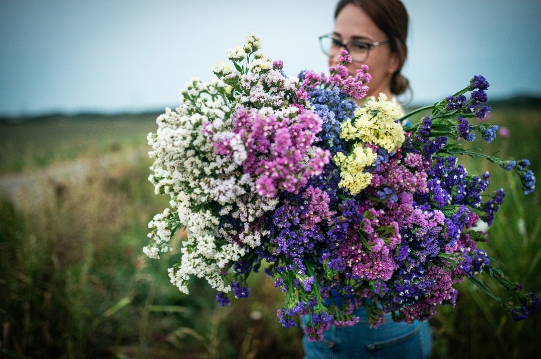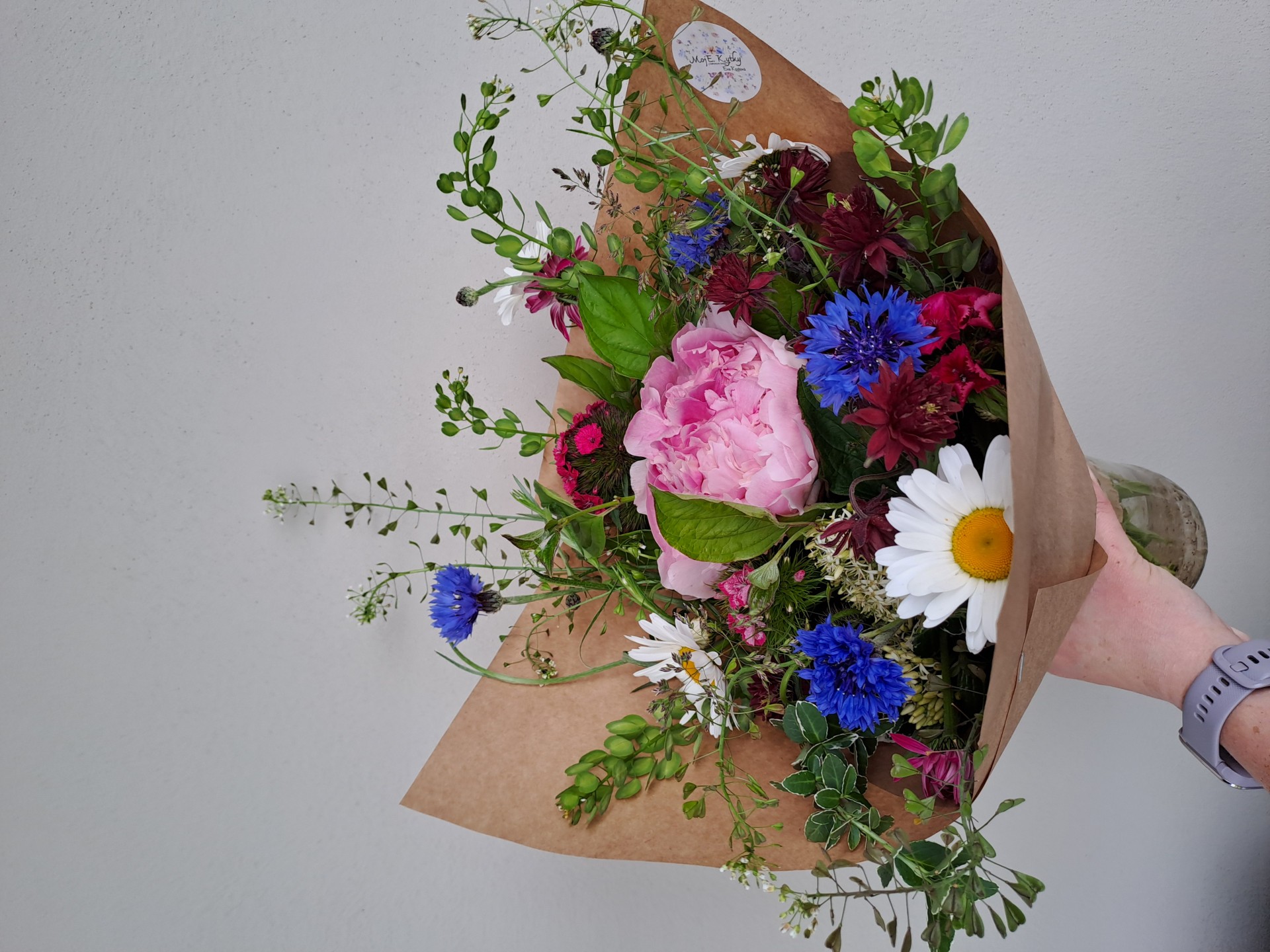 Kytice různých druhů a barev, pěstovány ze semínka (přípradně trvalky a keře), kytice je sezónní vždy složenáá z toho, co zrovna v danou chvíli kvete.