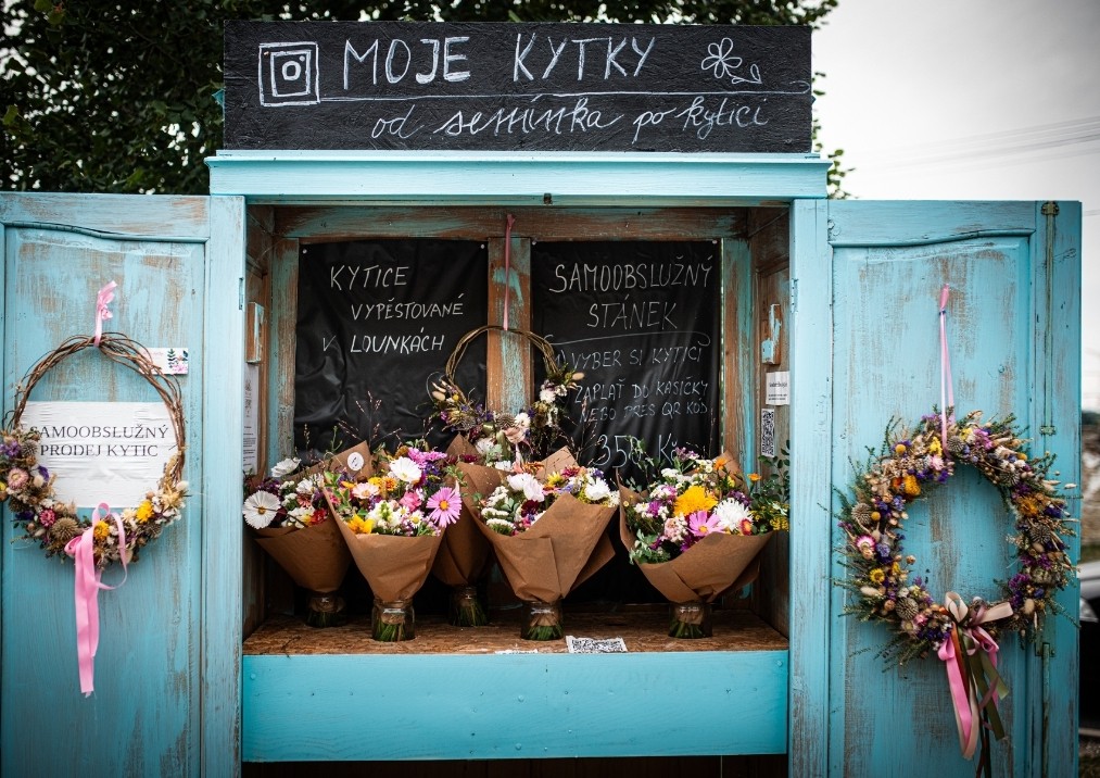 Květinová farma paní Evy nabízí menší květiny v samoobslužném stánku v CHodounech, větší jsou na objednání. Paní Eva pořádá různé workshopy, výzdoby na přání, věnce i svatby.