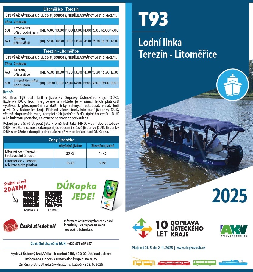 T93 je v provozu o víkendy a státní svátky od 31.5. do 2.11.2025. Ve všední dny od úterý do pátku od 9.6. do 28.9.2025. V pondělí nepluje.