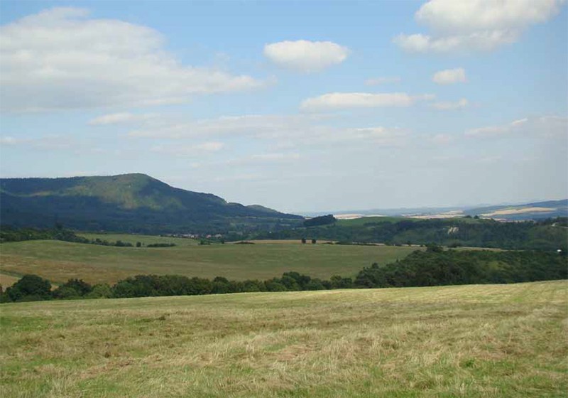 Východně Křížová hora, Sedlo, Vlhošť a část Ralské pahorkatiny včetně nejvyššího vrcholu, jižně a jihovýchodně Litoměřice, na horizontu Říp, jihozápadně Milešovské středohoří, západně až severozápadně menší část Krušných hor, severozápadně až severně Varhošť a Holý vrch, severovýchodně Babinské louky a vrcholové partie Dlouhého vrchu Babinské louky. Pod vrcholem skalnaté sutě. Na jihozápadní straně jednoho ze skalnatých výběžků se nachází malá jeskyně.