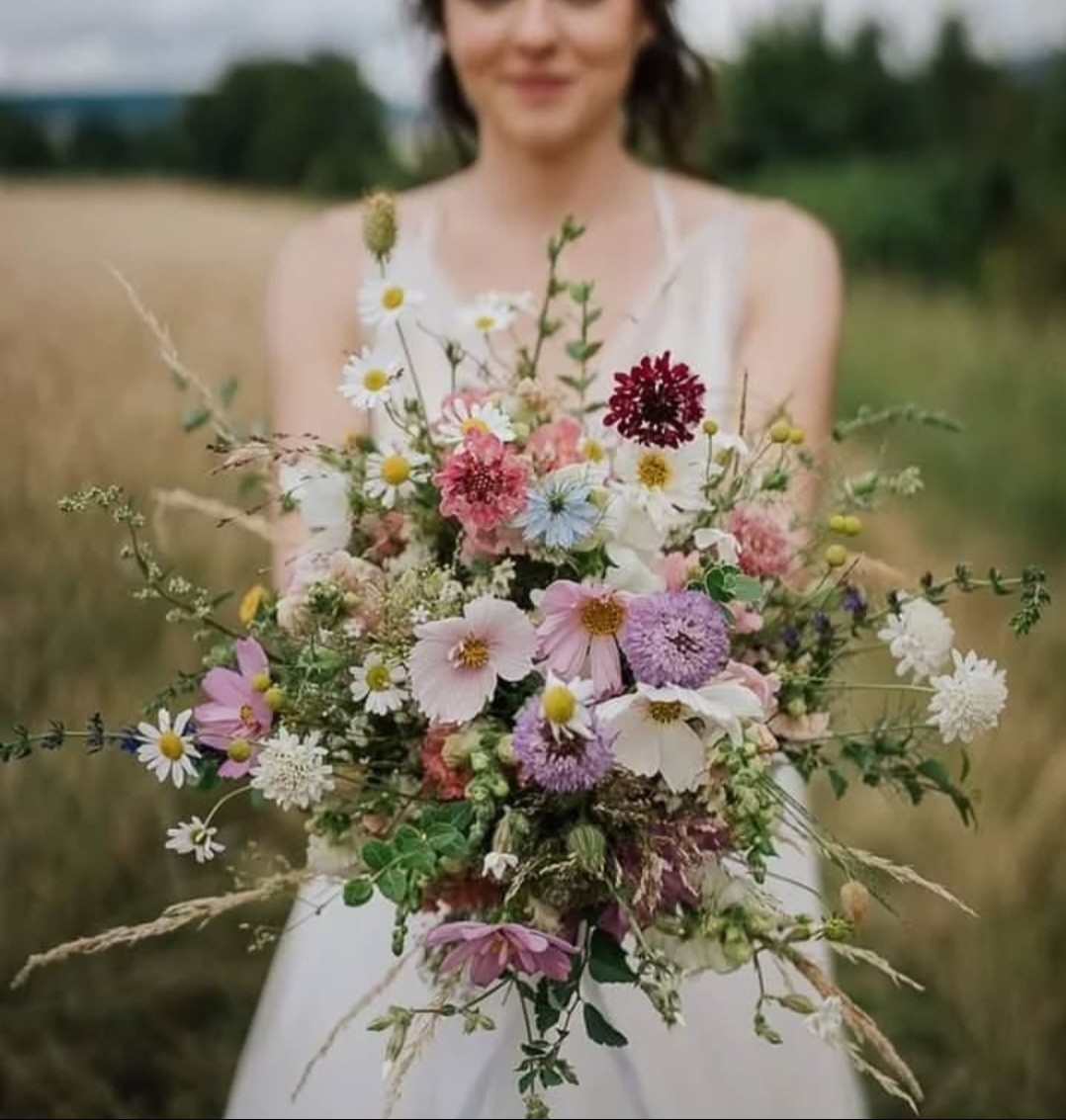 Kytice různých druhů a barev, pěstovány ze semínka (přípradně trvalky a keře), kytice je sezónní vždy složenáá z toho, co zrovna v danou chvíli kvete.