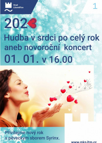Novoroční koncert proběhne 1. 1. 2023 v 16 hodin v Hradu Litoměřice. Vystoupí komorní sbor Syrinx. Přijďte s námi přivítat nový rok 2023.