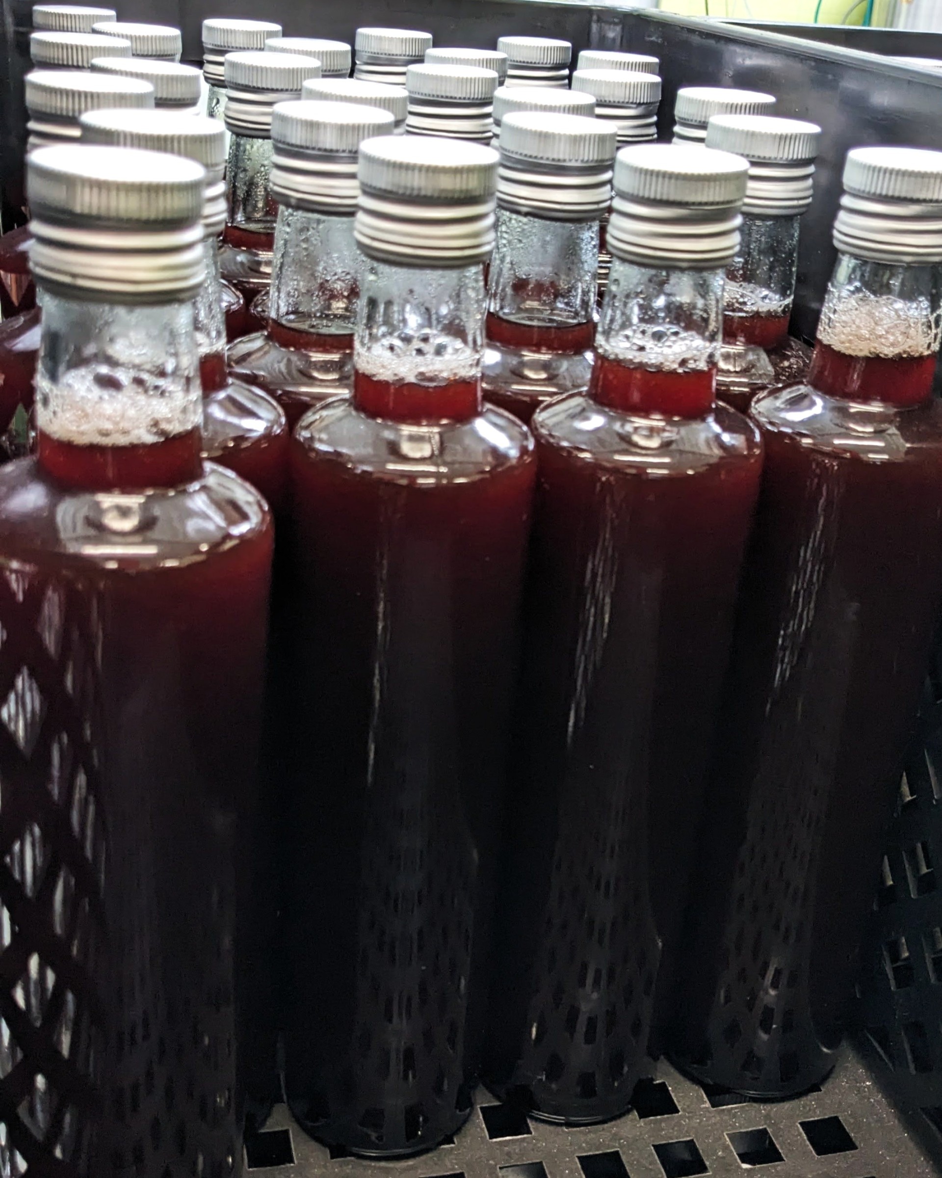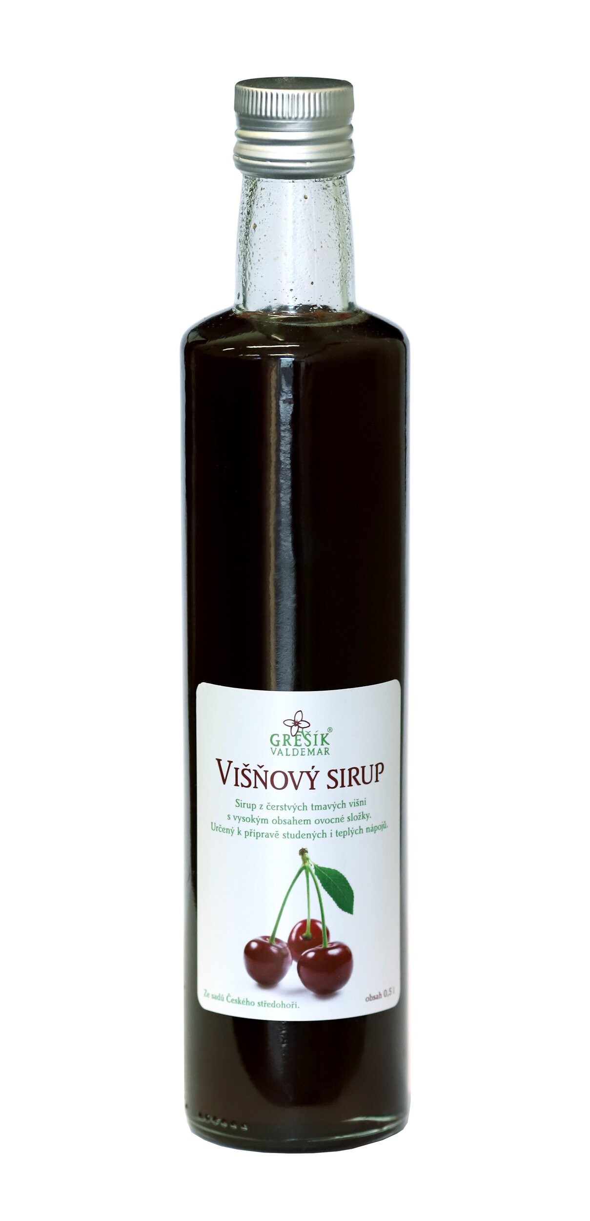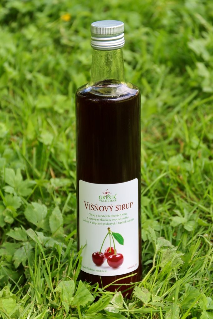 Složení: cukr, višňová šťáva min 50 %, koncentrát z citrónů. Sirupy se prodávají v 0,5 l sklenicích s ručně lepenou etiketou.