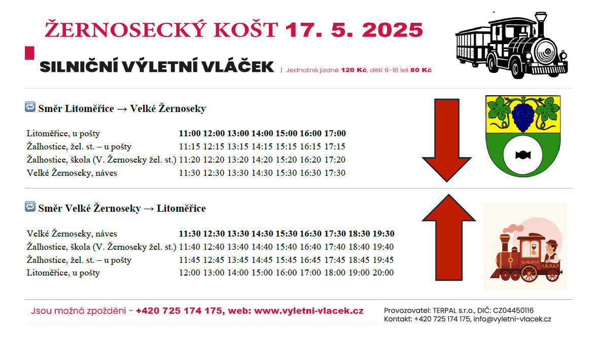- kyvadlová doprava z Litoměřic výletním vláčkem, jízdní řád v příloze
