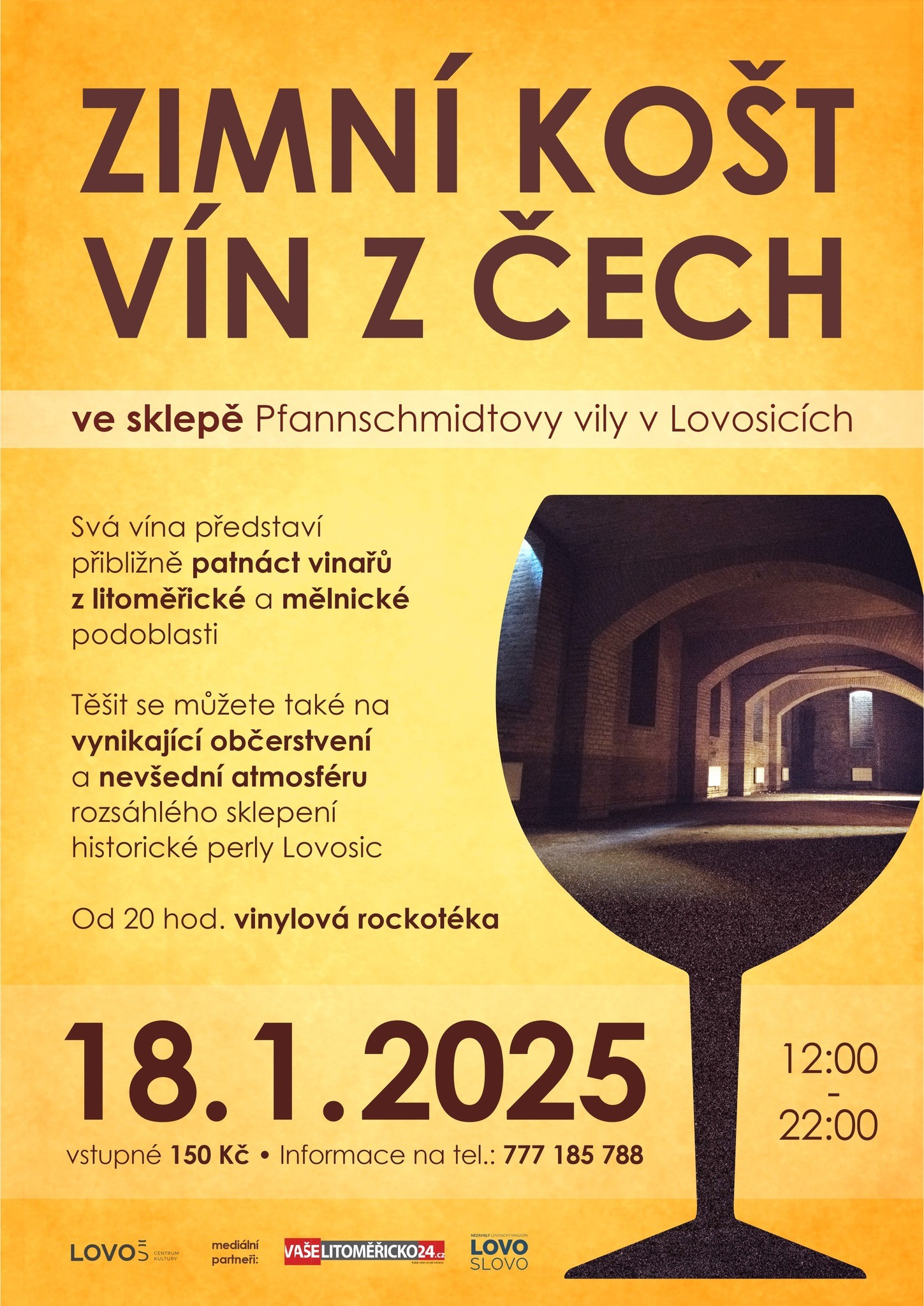 Největší zimní košt vín z Čech je po roce tady. V mimořádném prostředí krásného sklepení pod Pfannschmidtovou vilou v Lovosicích (dnes knihovna a infocentrum) svá vína představí přibližně patnáct vinařů z Čech.