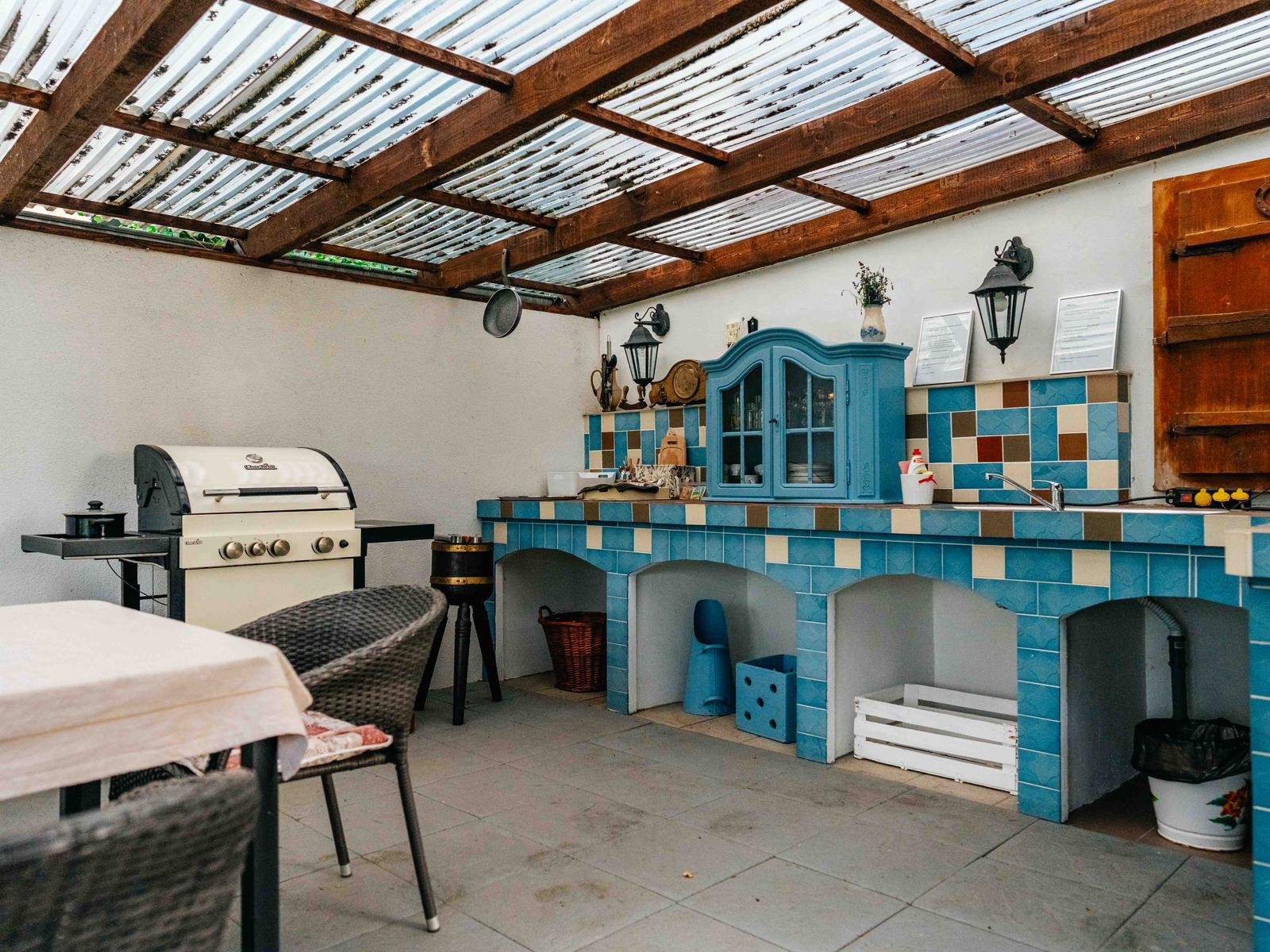 - kuchnia na świeżym powietrzu z grillem i miejscami do siedzenia
